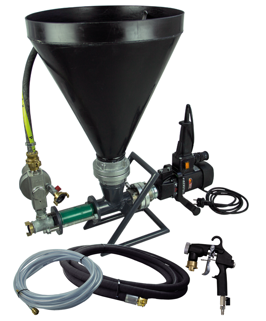 For material supply a hopper with 6 ltr or 30 ltr content is available. BMP 5 is also suitable for spraying by using special accessories like spray lance, spray gun etc.
